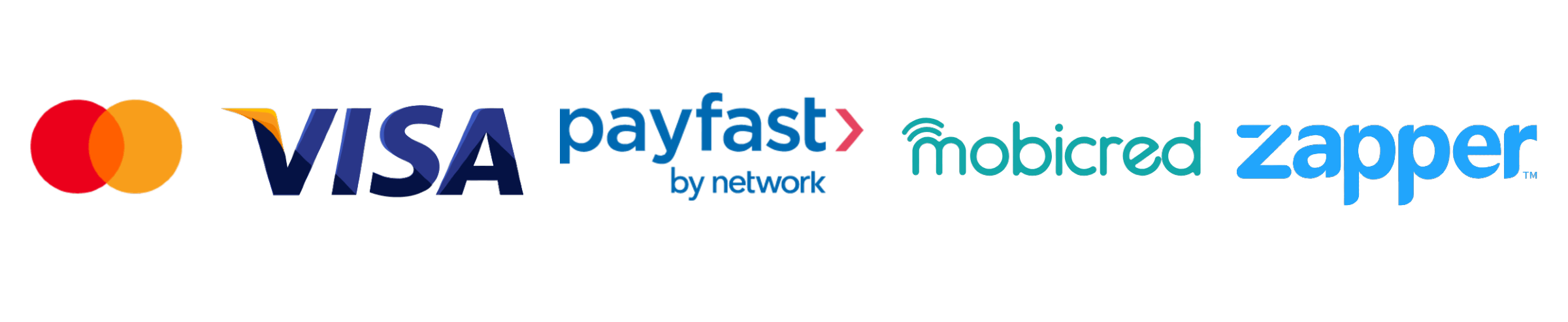 We accept secure online payments via credit/debit card, EFT, Payfast, Zapper and Mobicred . Please note that orders are only processed once payment has cleared in our account.